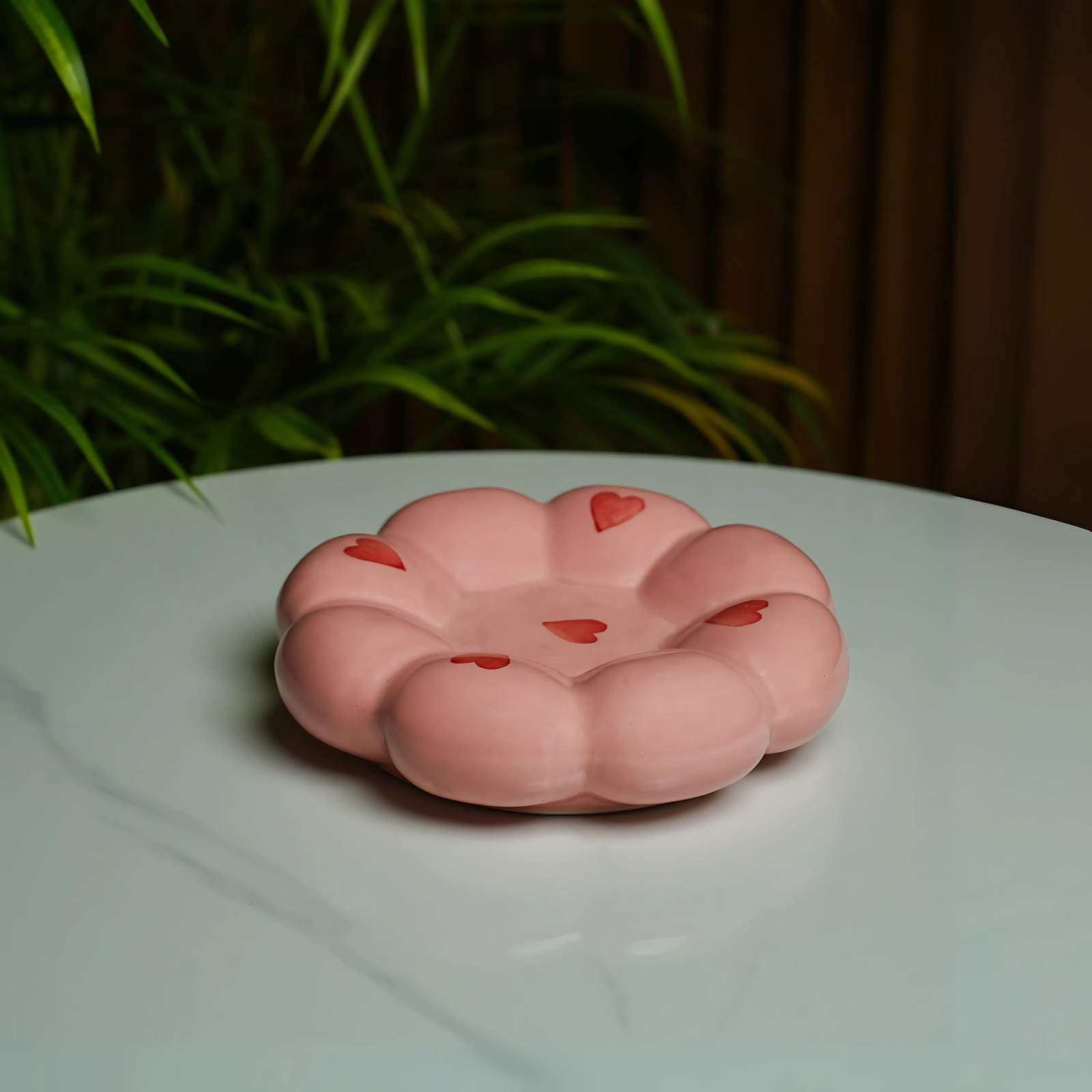 Sip in style with our Cherry Bloom Cup & Saucer set – a delightful blush pink ceramic teacup paired with a plush, petal-like saucer. Hand-painted with dainty red hearts, this charming duo is perfect for tea time, gifting, or elevating your shelf aesthetic. Handcrafted in India with love.