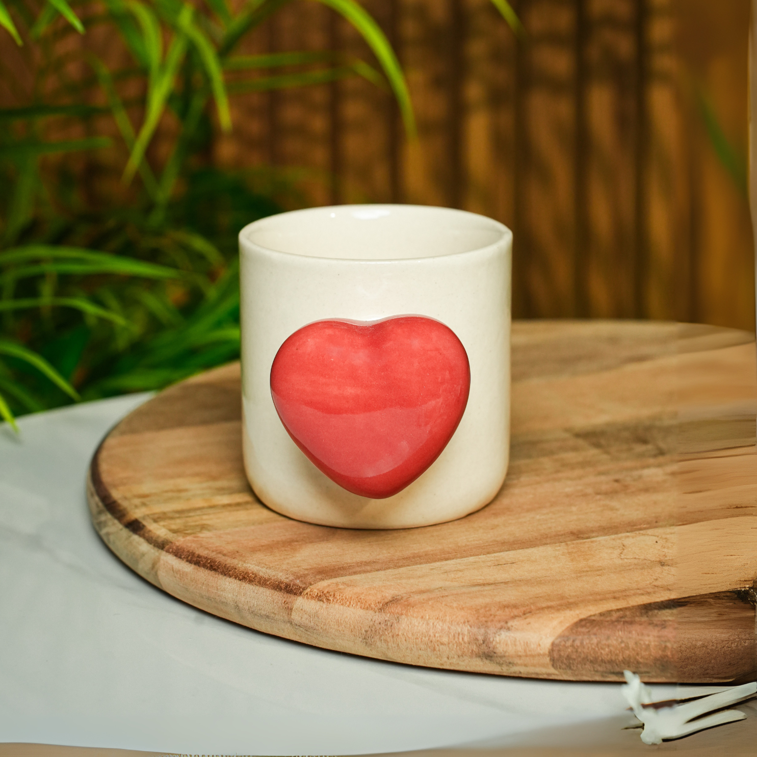 Wrap your hands around the Heartfelt Hug Mug – a handcrafted ceramic mug featuring a 3D red heart on the front, a heart-shaped handle, and a surprise heart inside. Thoughtfully designed to spark joy, it's perfect for cozy moments, gifting, or your daily cup of love. Made in India with care.